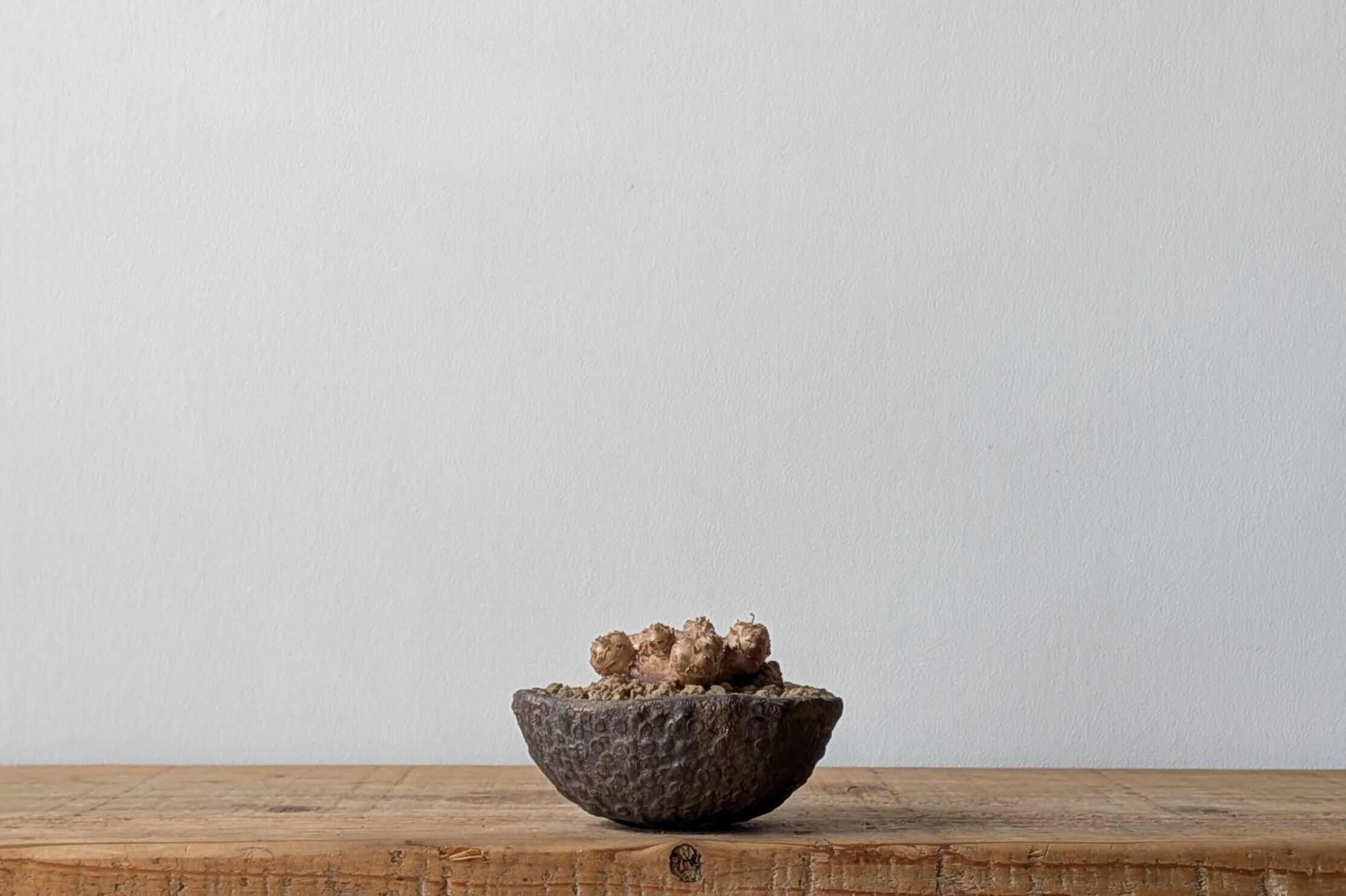 お椀型の器はとても浅い器のため、基本的には低重心のサボテンやチレコドンなどが合わせやすいですが、アガベの収まりもよく、コンパクトに育てる植物にぴったりの器です。