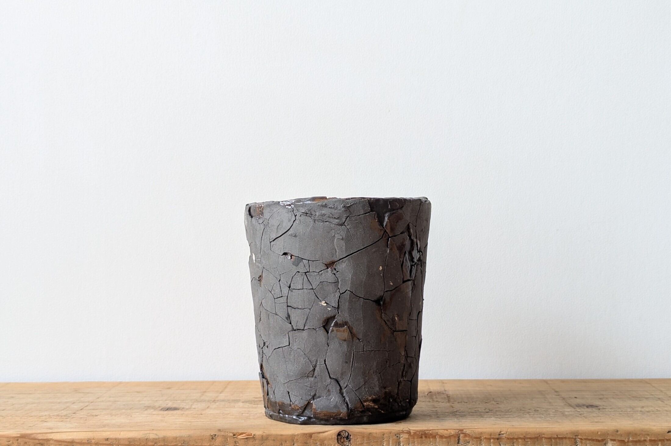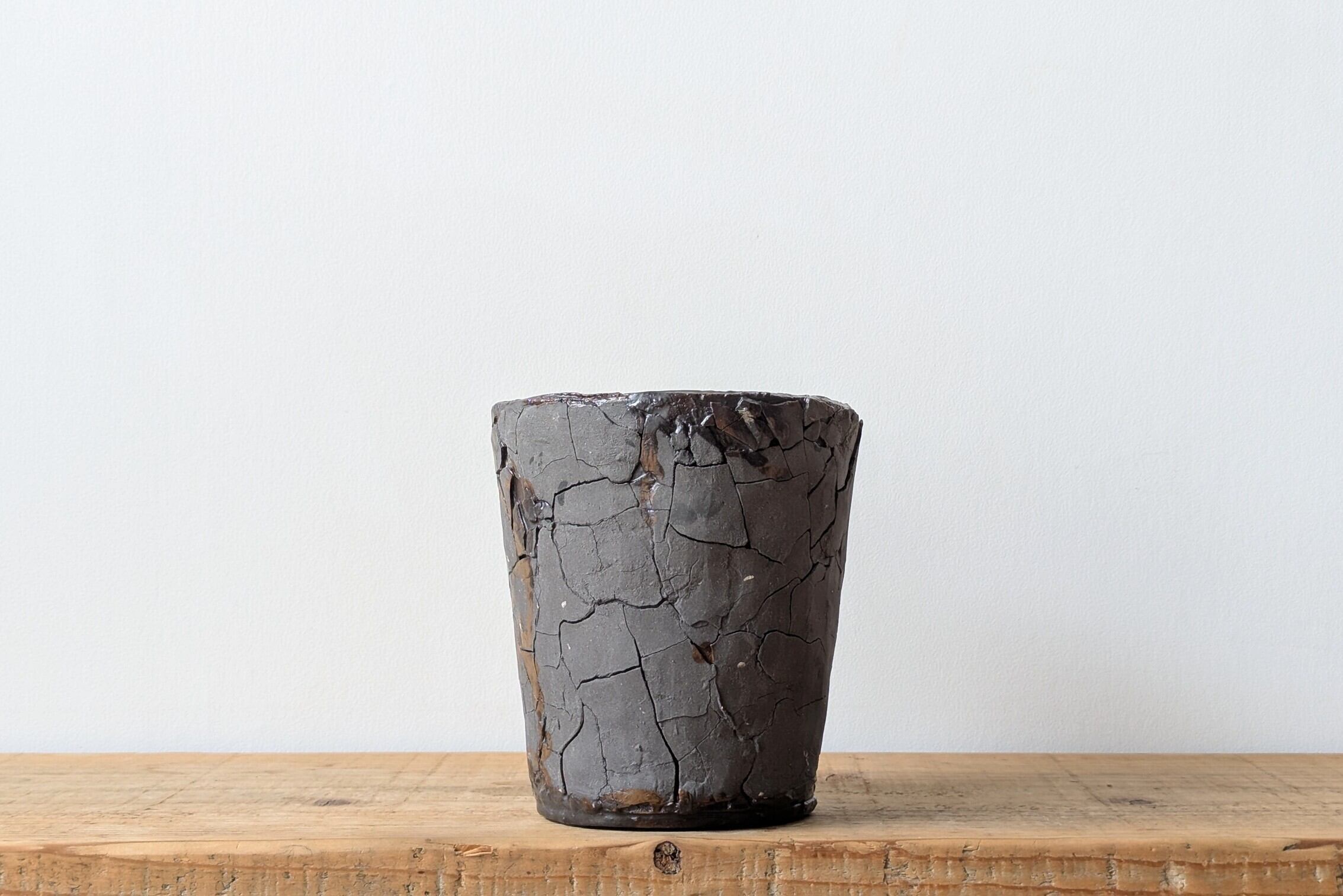 ひび割れのダメージ感が植物の力強さを引き立てます。市場にも中々無いサイズ感の器で灌木等の長物の相性も良い器です。