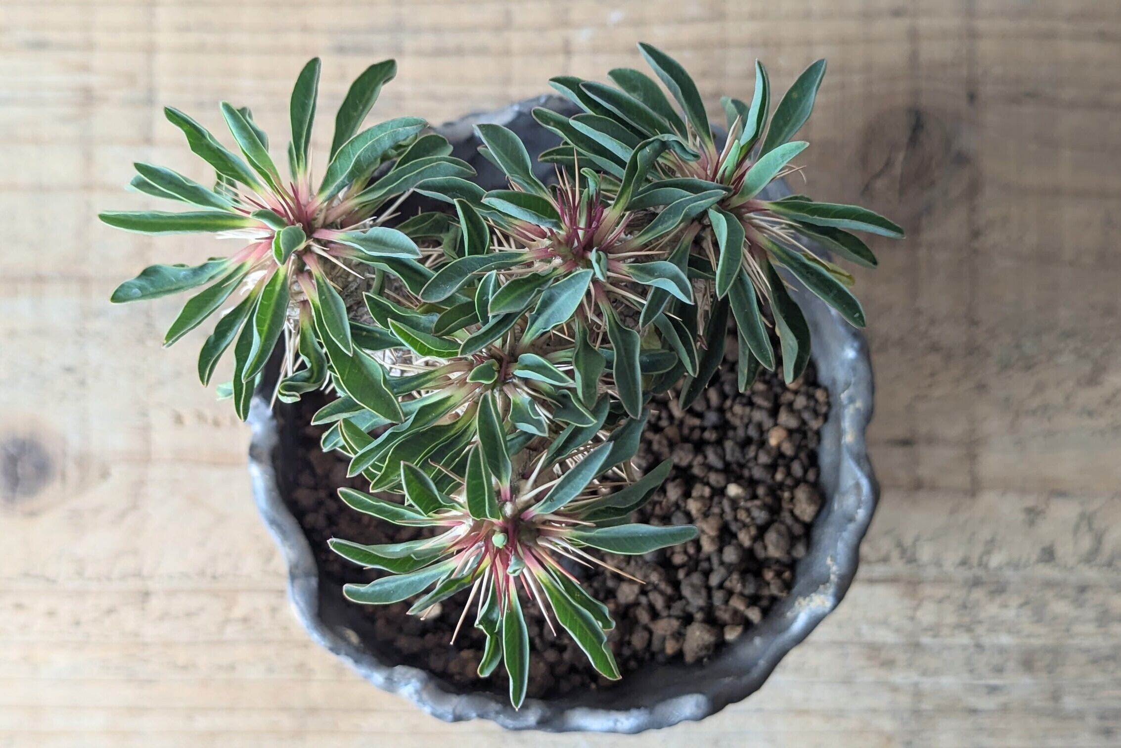 ちょっと大きめの ユーフォルビア ギラウミニアナ 付きです。多頭でこれから楽しみな株です。