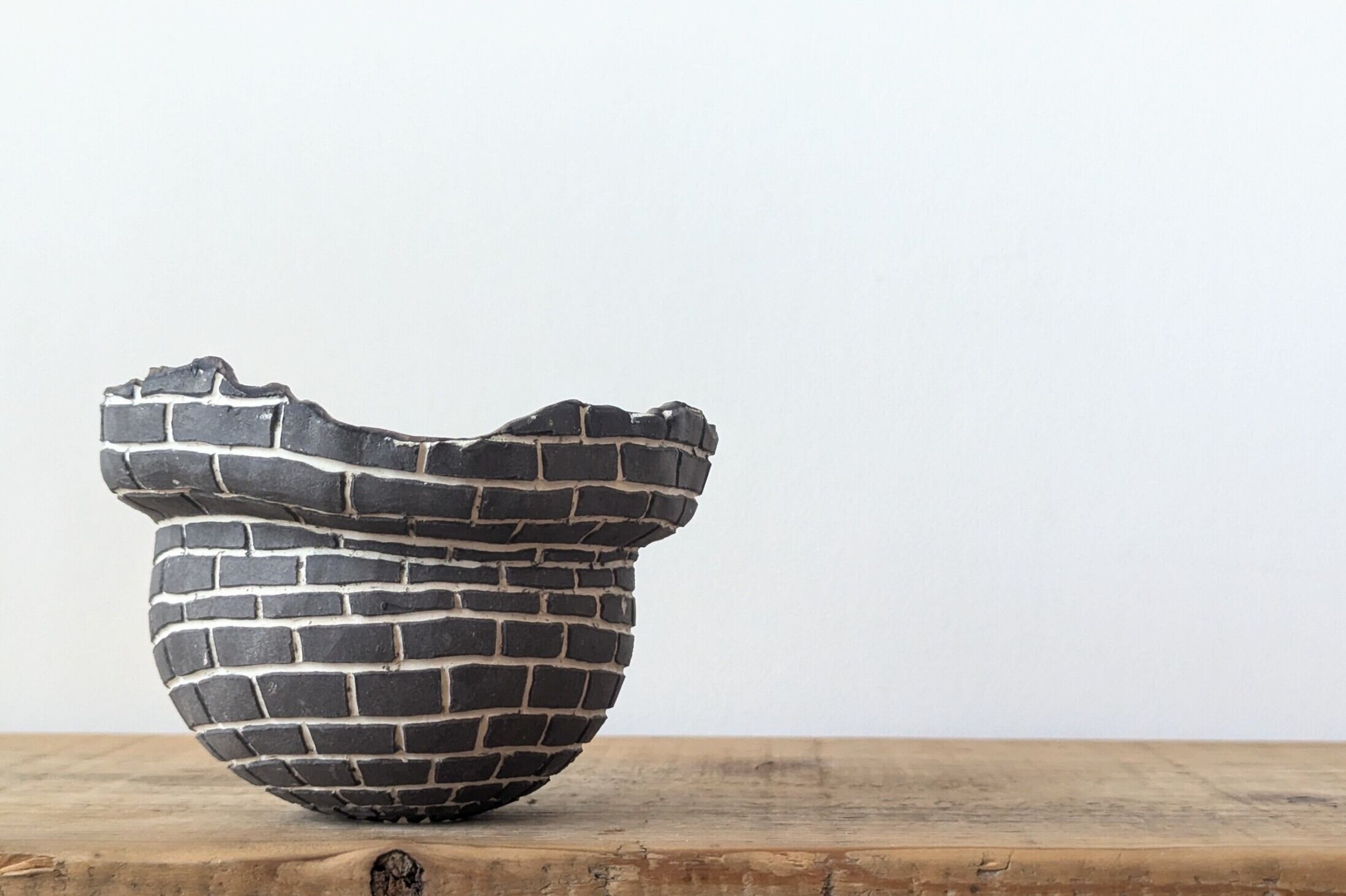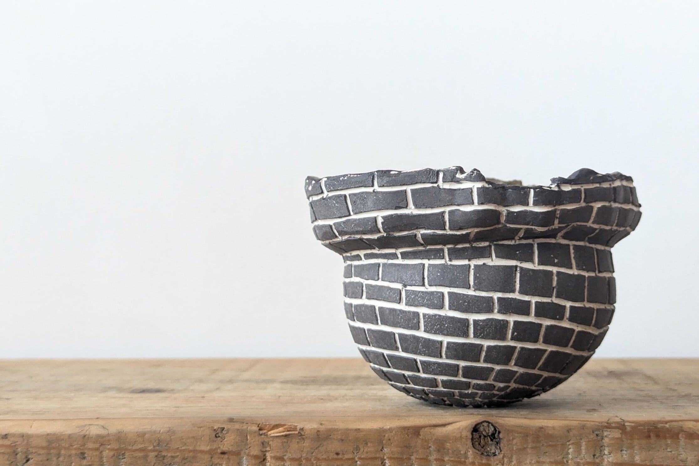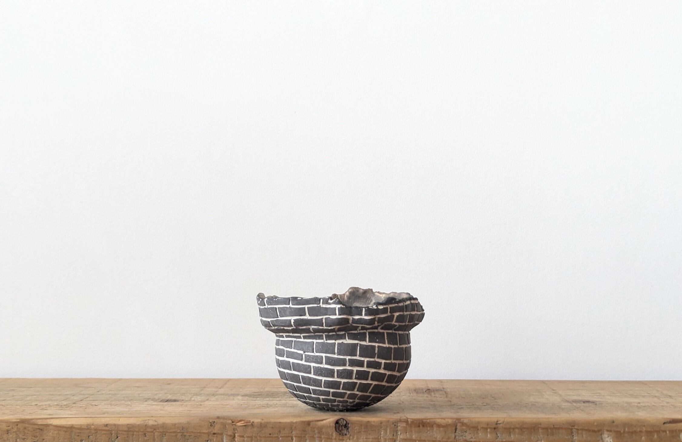 壷型に成型した陶土に特殊な製法で薄めのブラックの細かな模様を施しました。何とも不思議な模様が見る角度で違った表情を楽しめます。