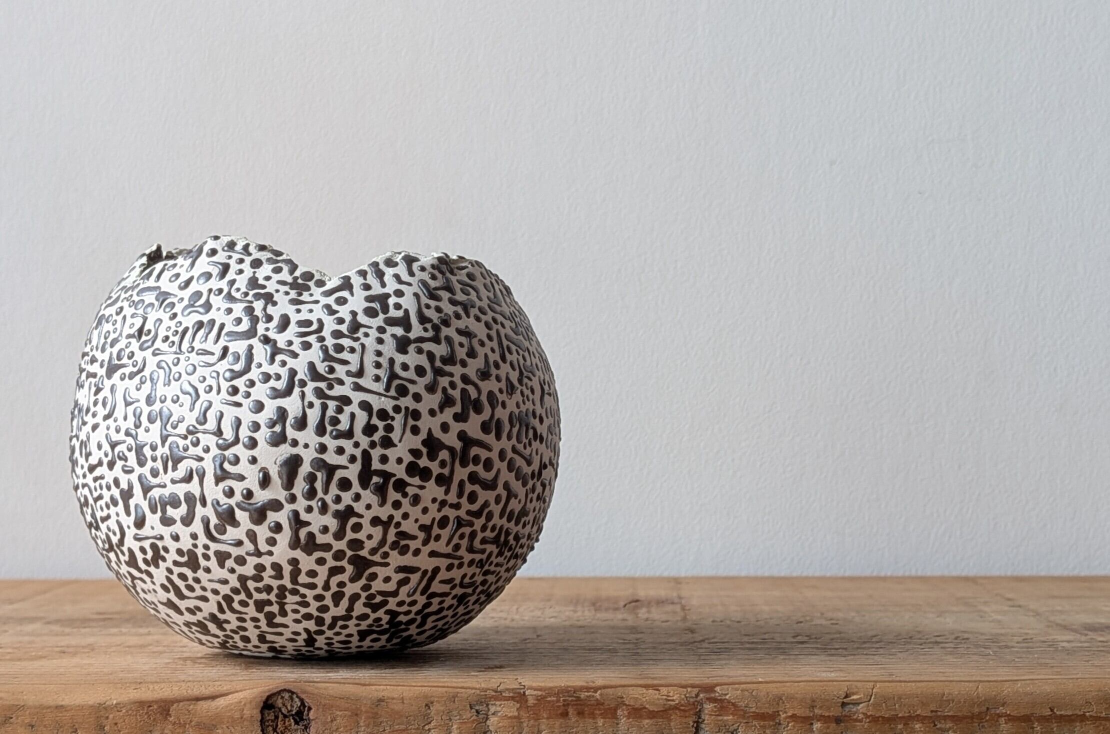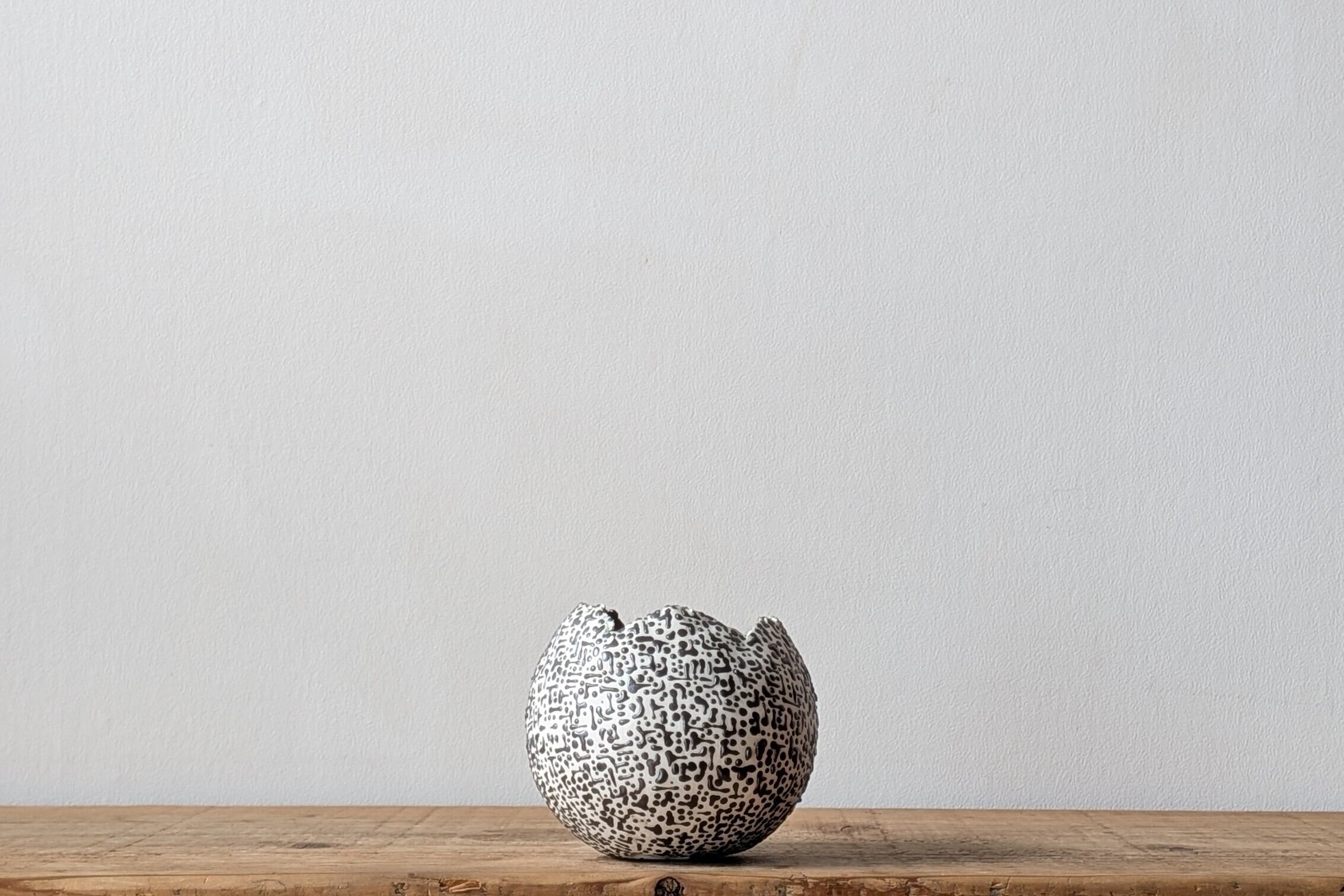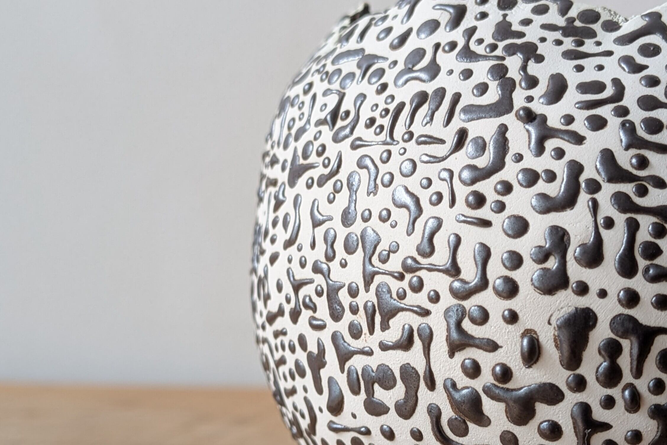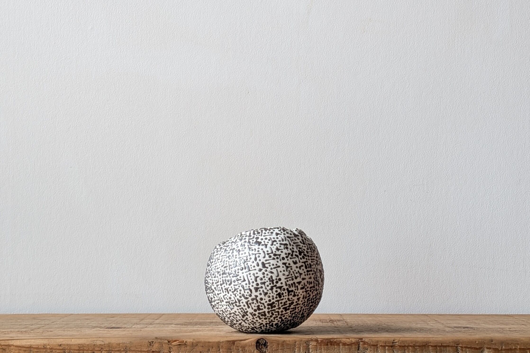 球型に成型した陶土に非常に細かい模様を作りました。