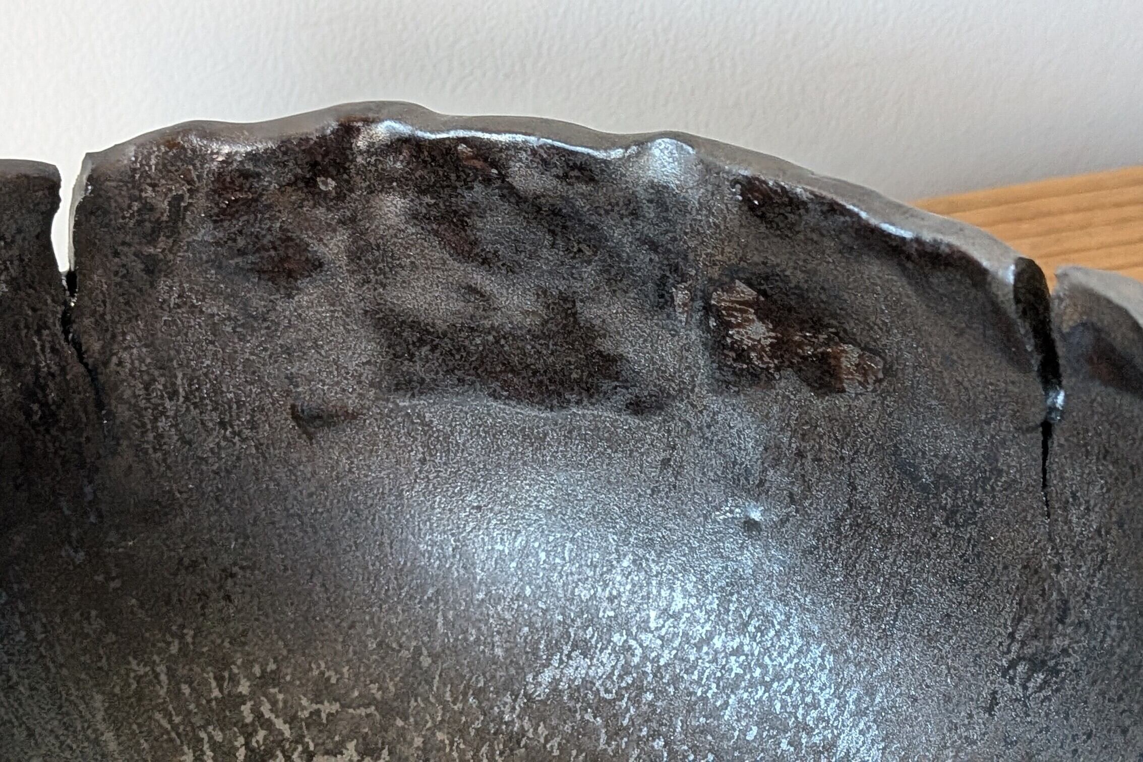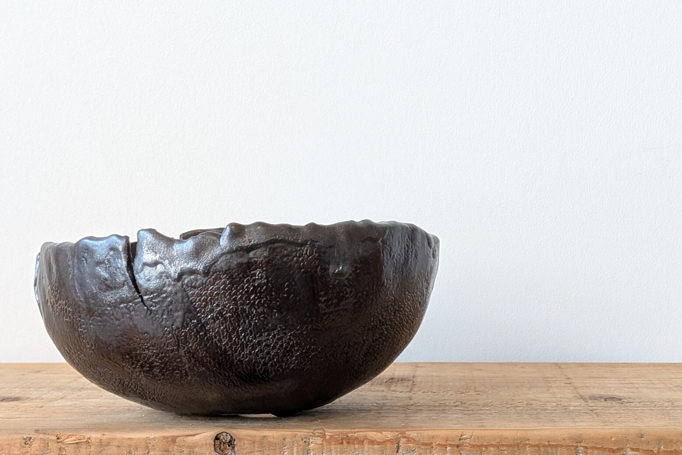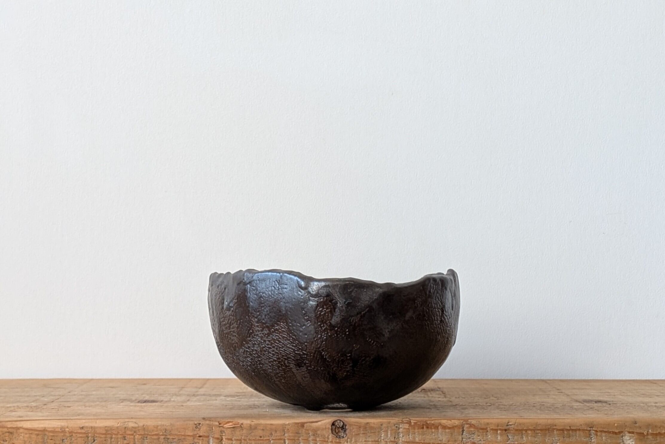 黒土を半円に成型し特殊な製法で表面に模様を施し、マットブラックの釉薬で仕上げました。