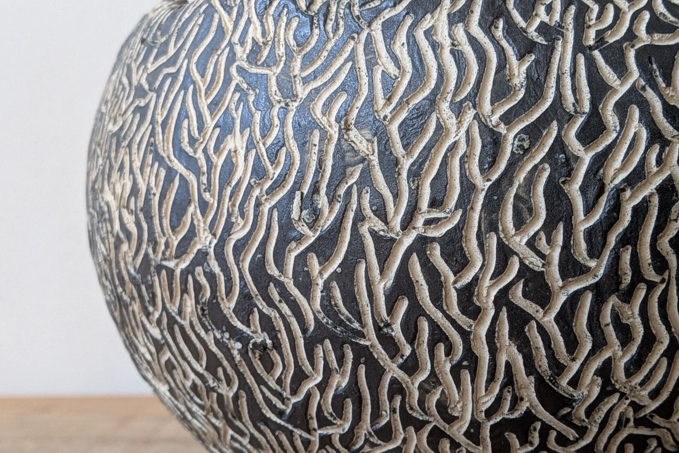 お椀型に成形した信楽粘土に特殊な製法で木の表面の様な模様を施しました。通常のお椀型の2倍サイズとなりますが見た目は4倍くらいあります。