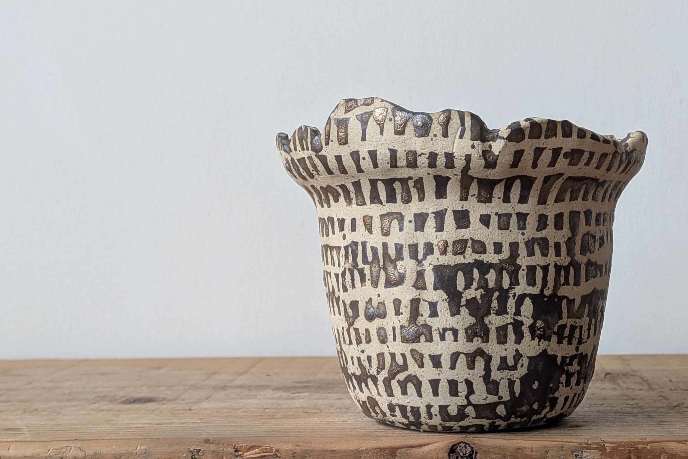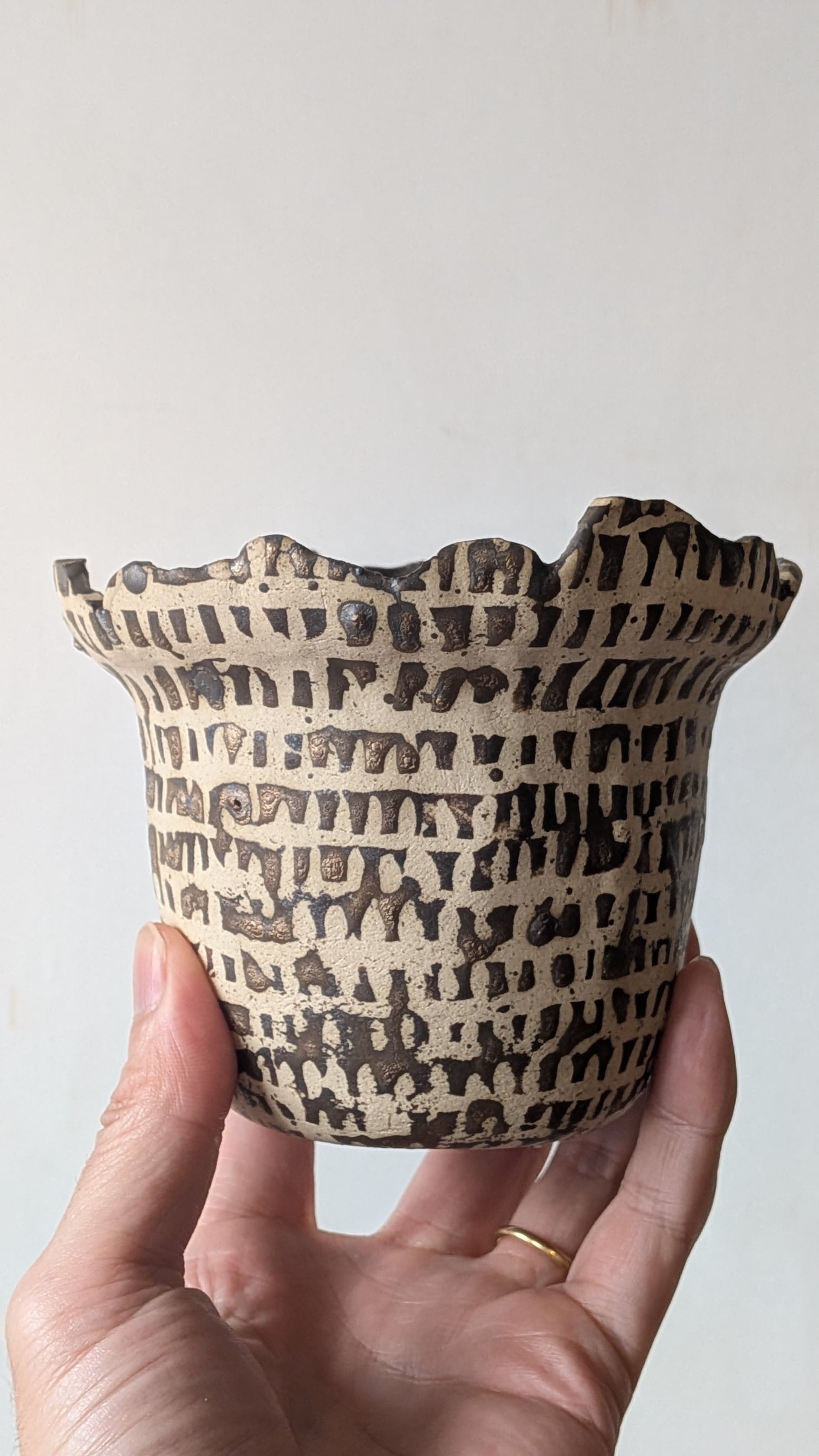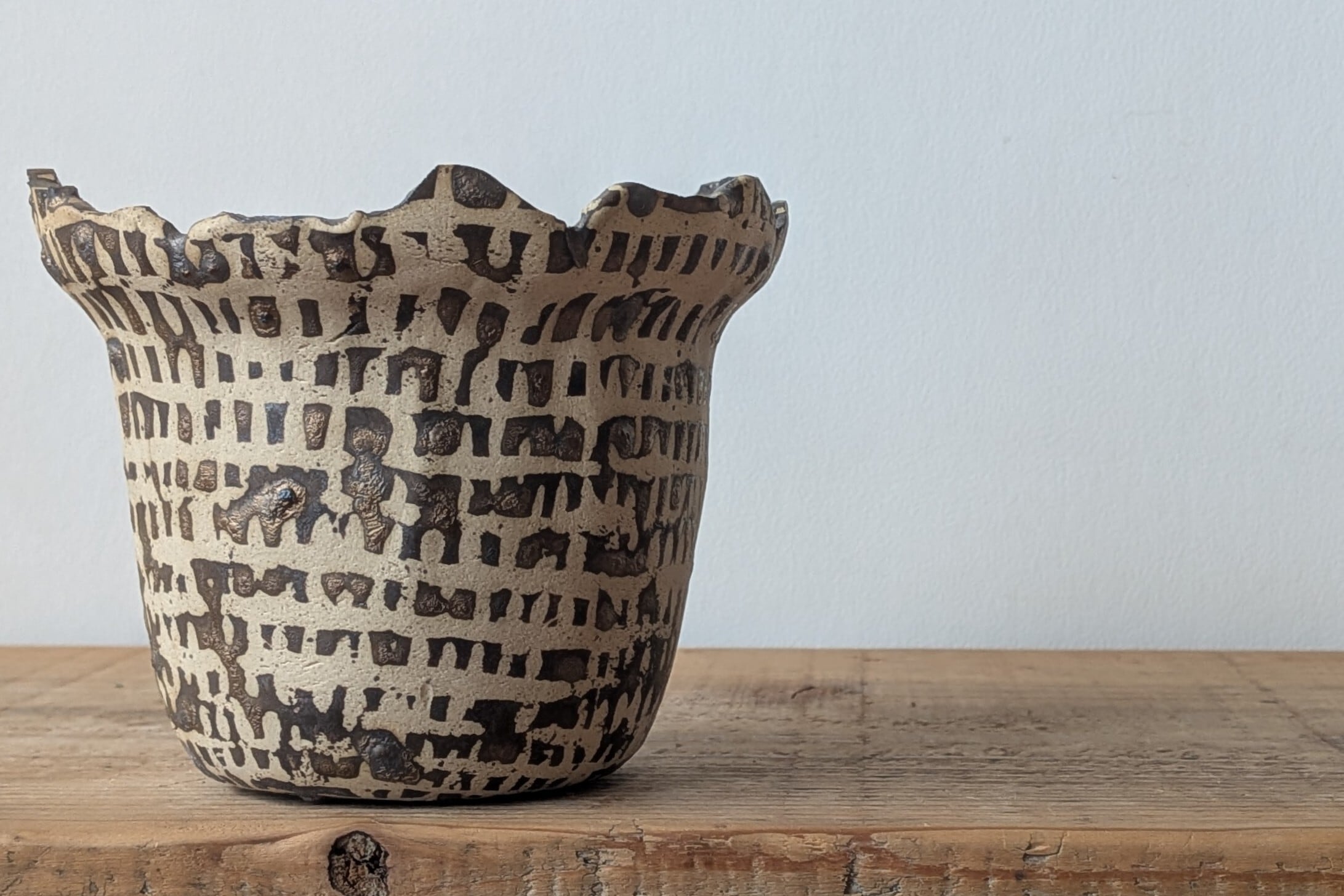 古代の文字や文様を想わせる器です。