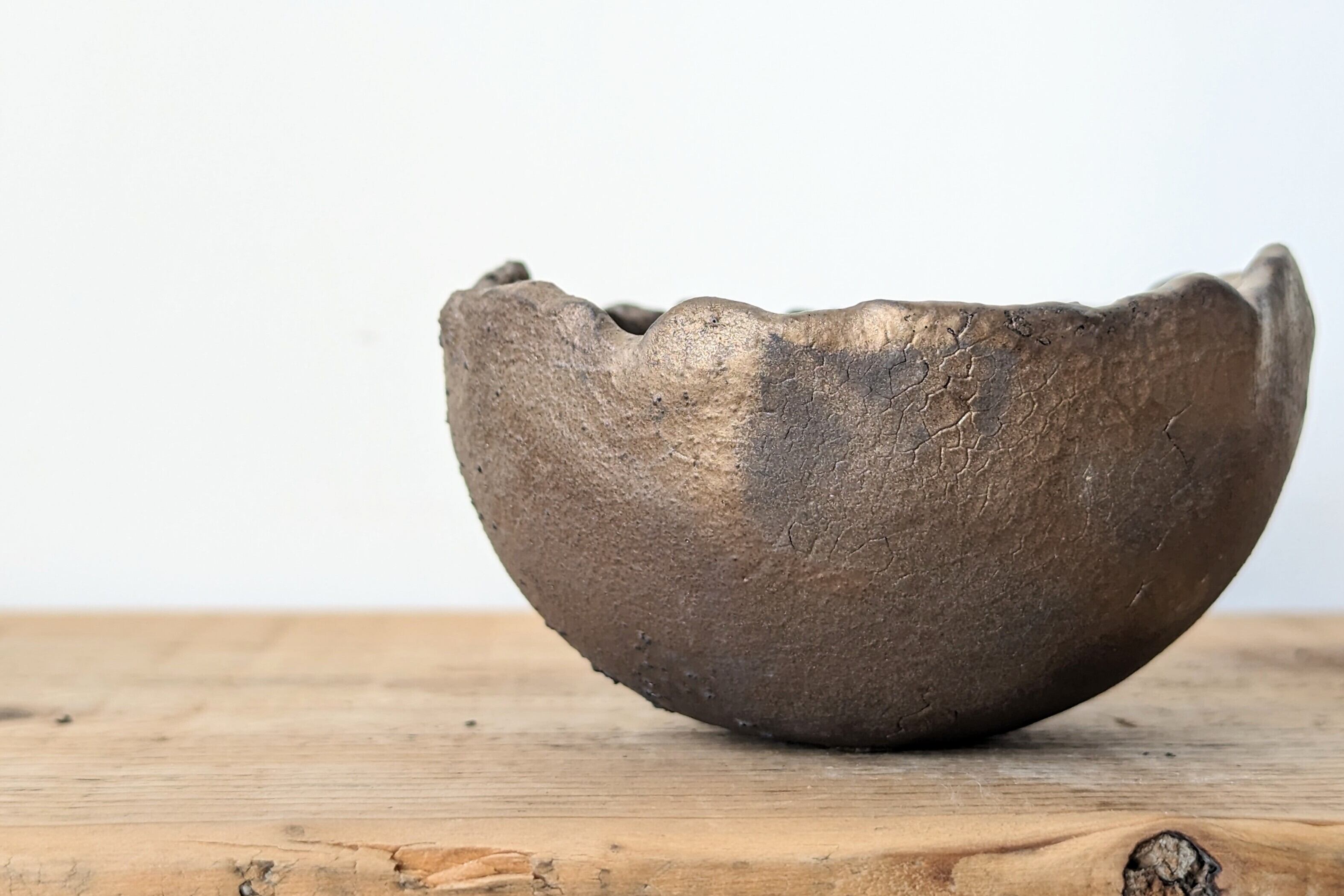 お椀型に成型した器にひび割れを施し