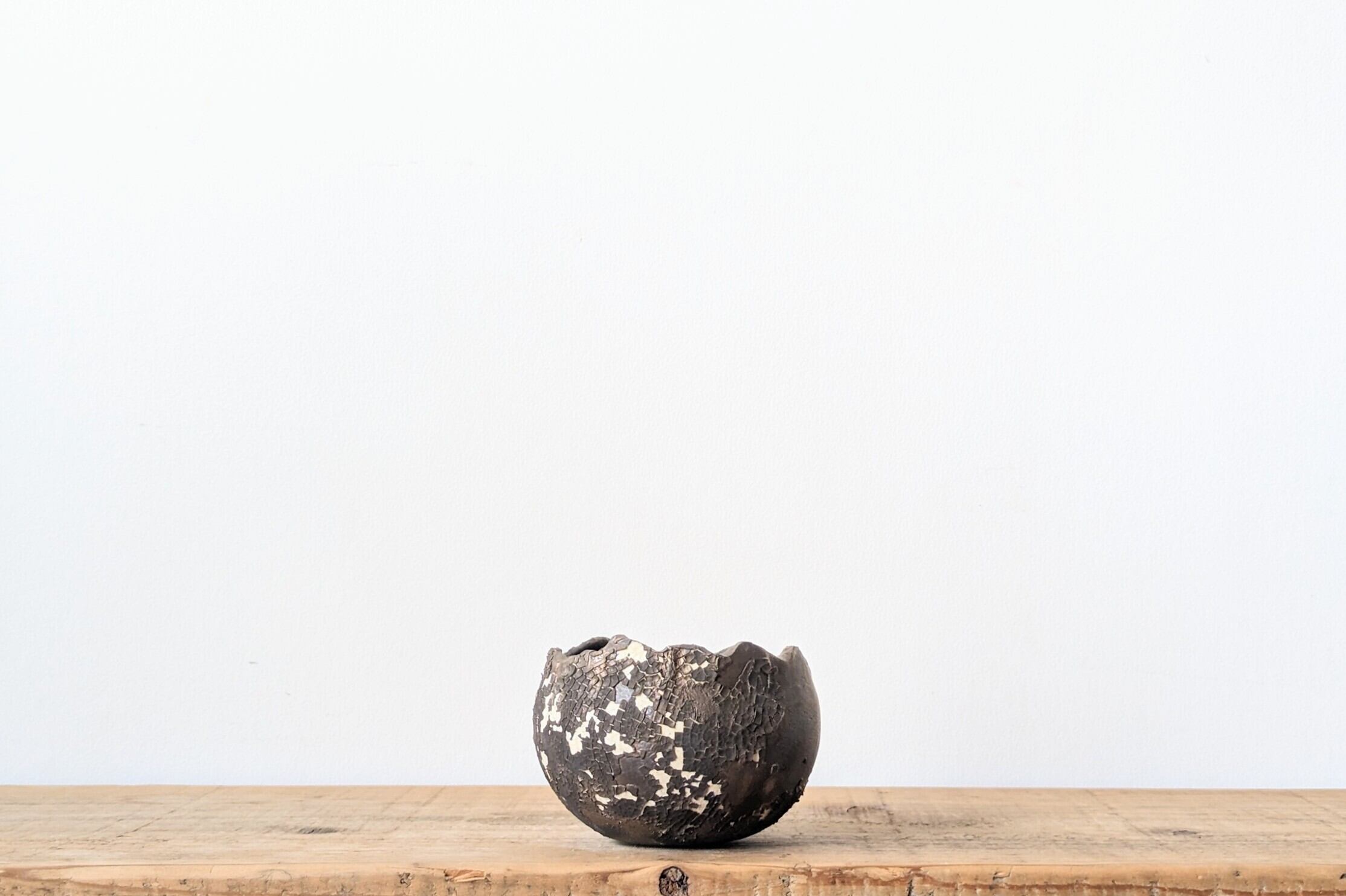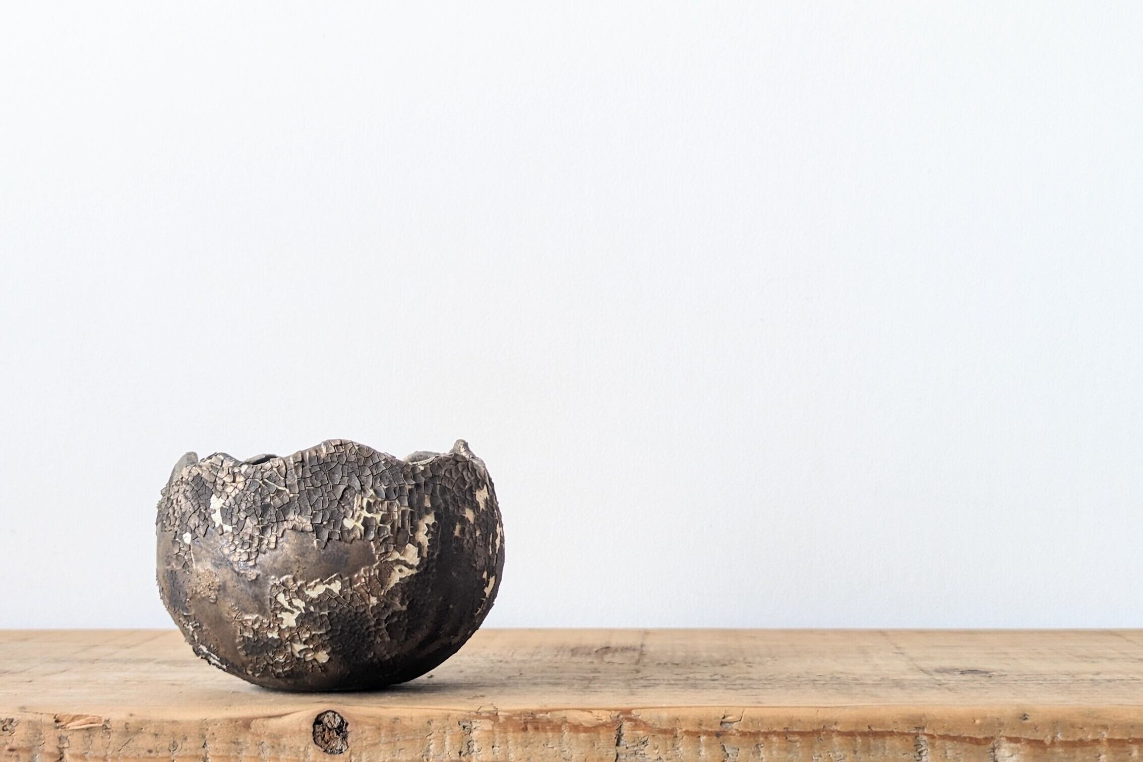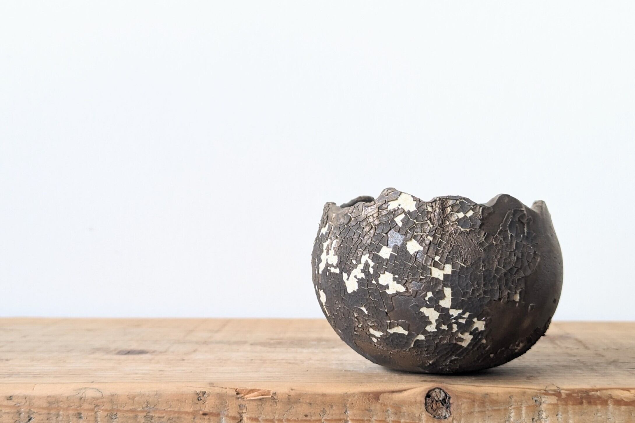 半円に成型した陶土に細かなひび割れをつくり