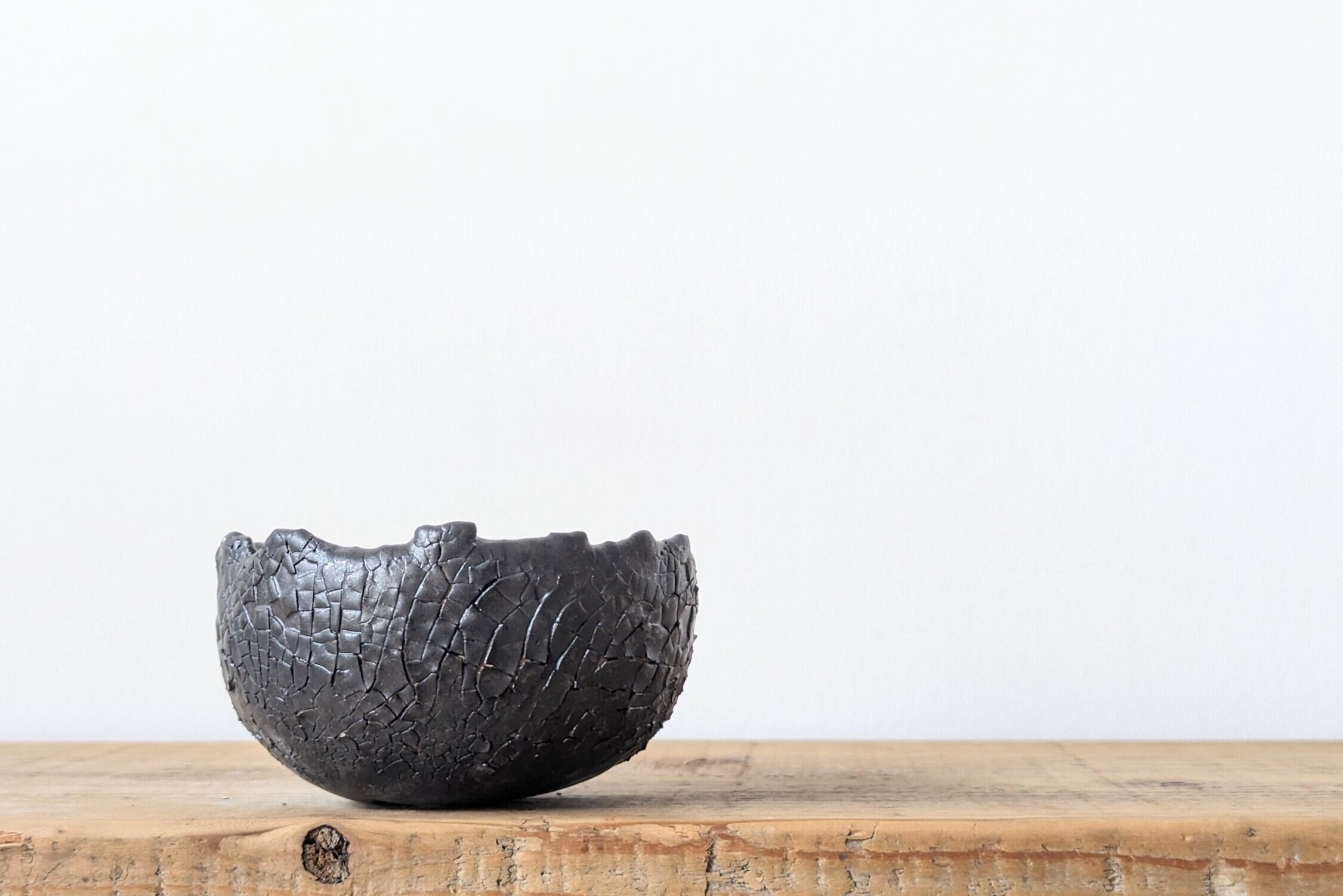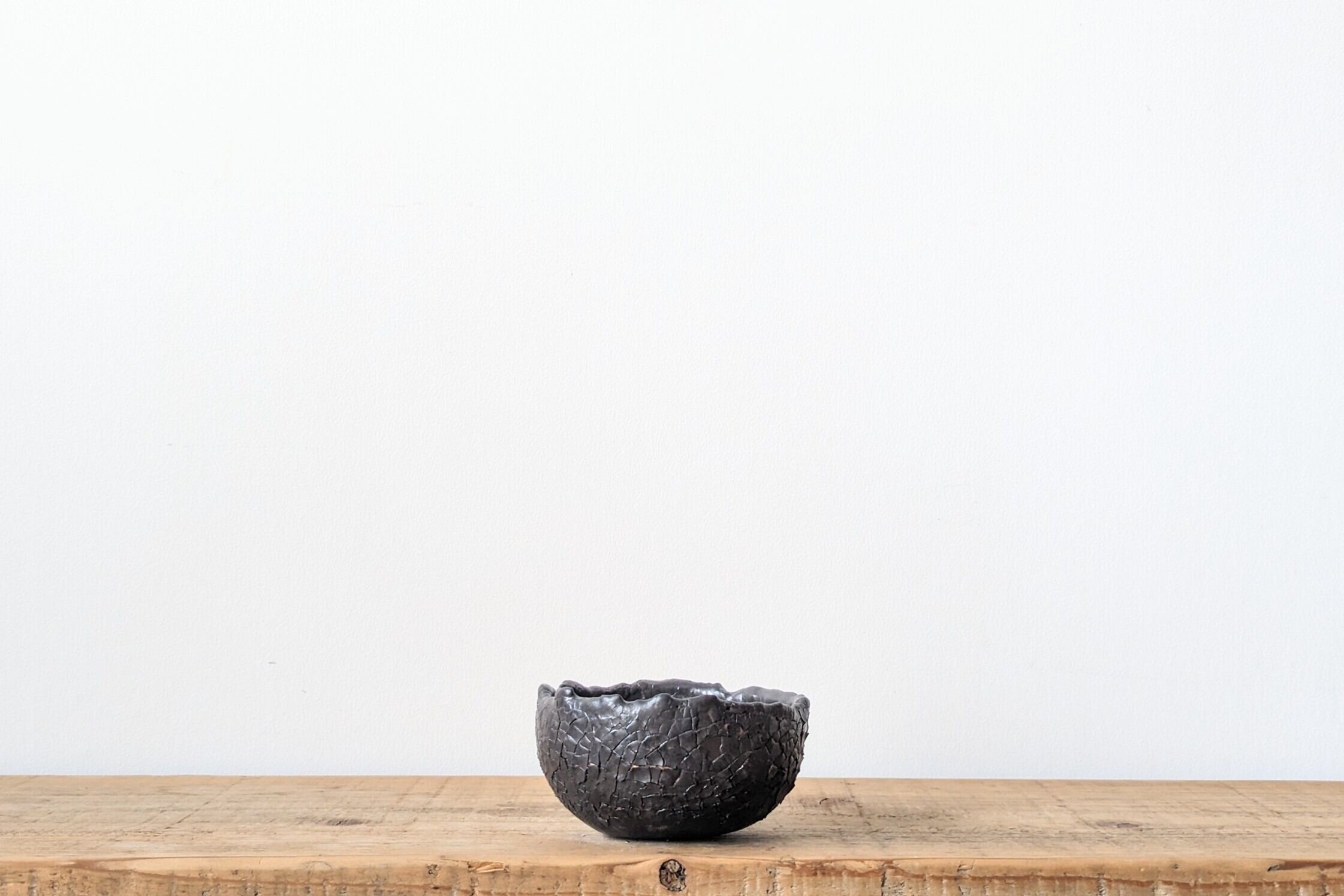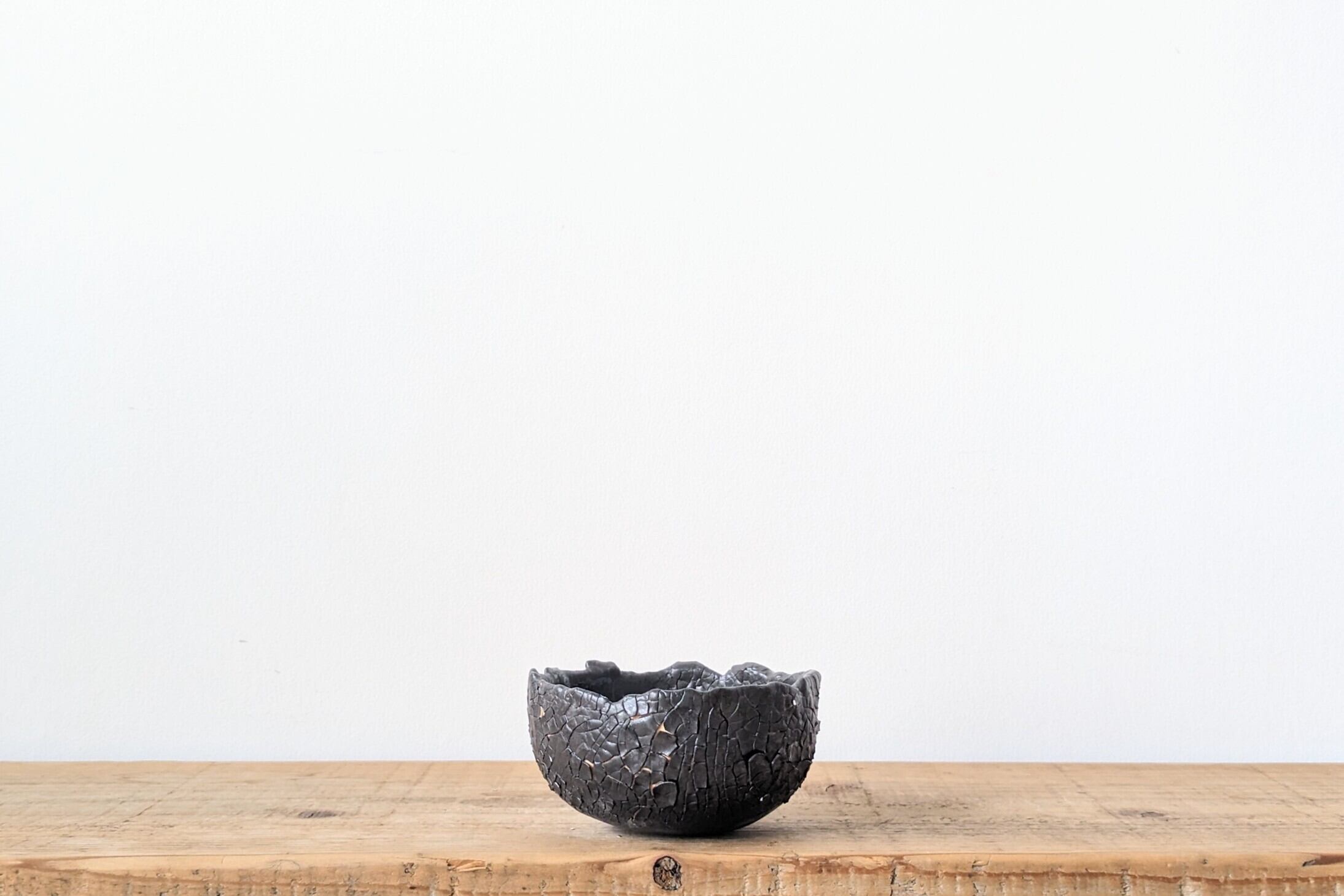 半円に成型した陶土に細かなひび割れをつくり