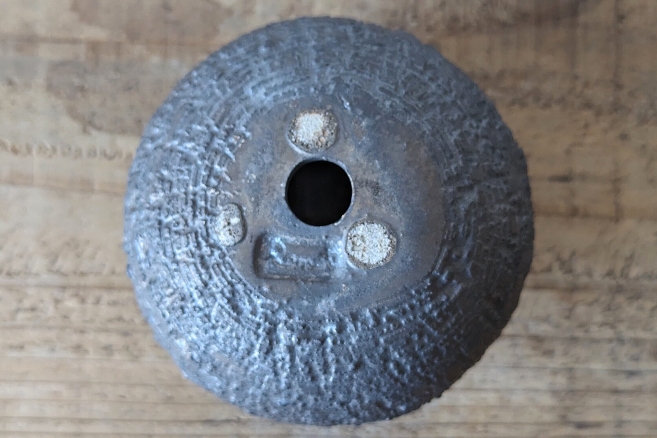 球型に成型した陶土に細かい細工を施し、まるで木の表皮の様な雰囲気に仕上げました。