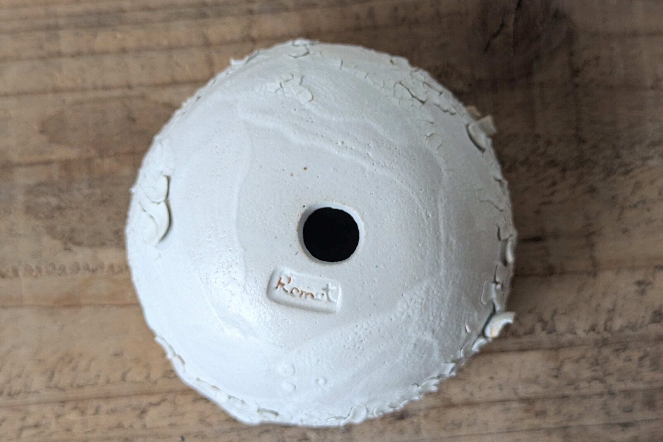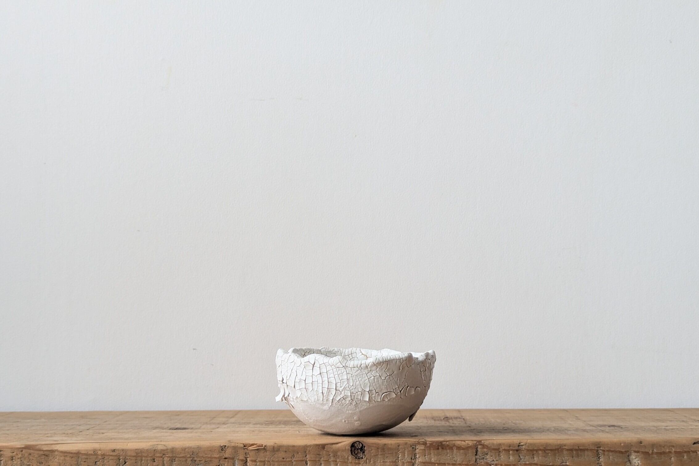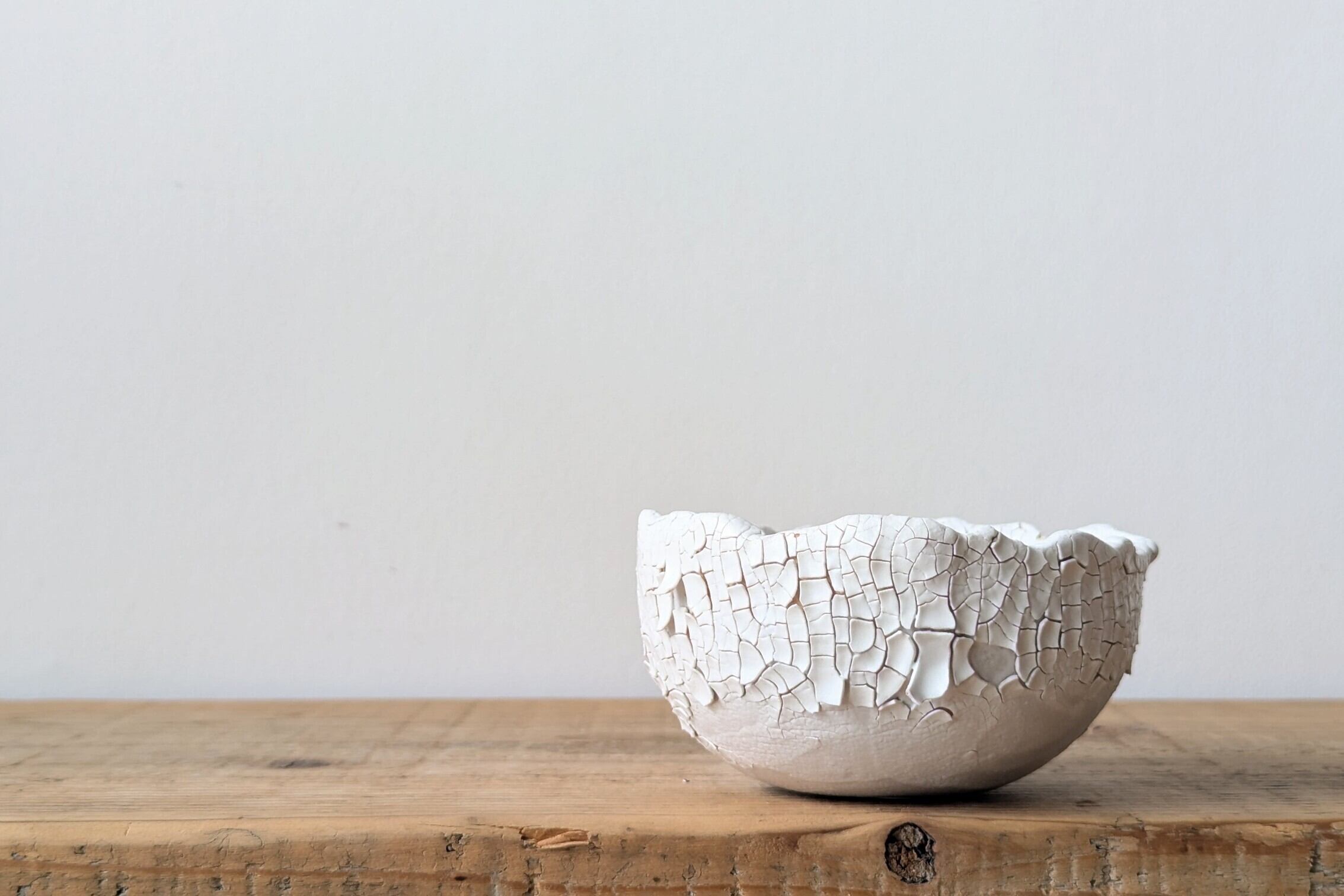 半円に成型した陶土に細かな激しいひび割れをつくり
