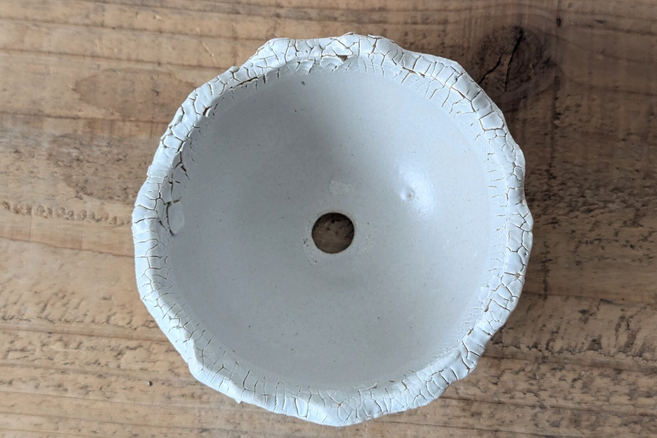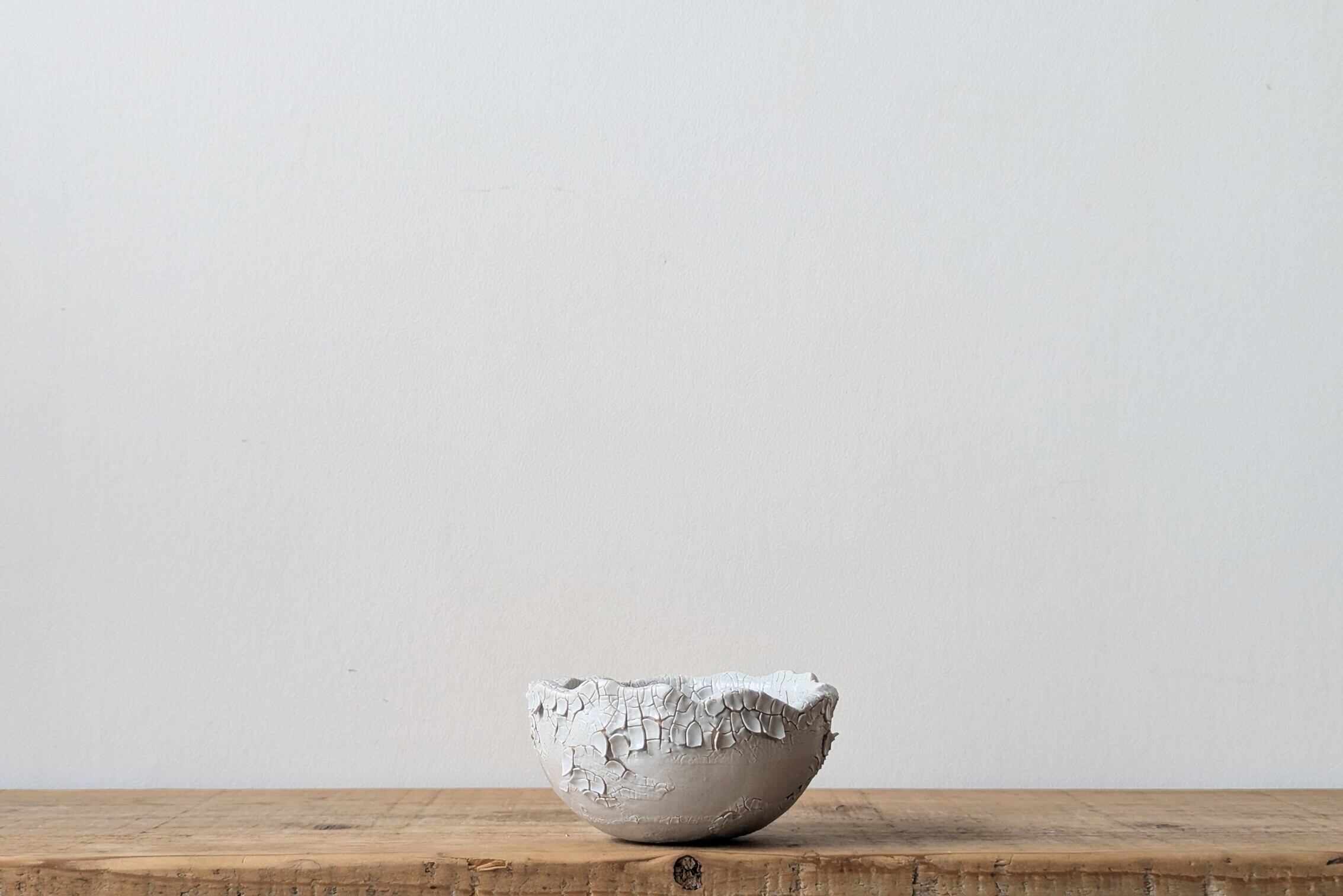 半円に成型した陶土に細かな激しいひび割れをつくり