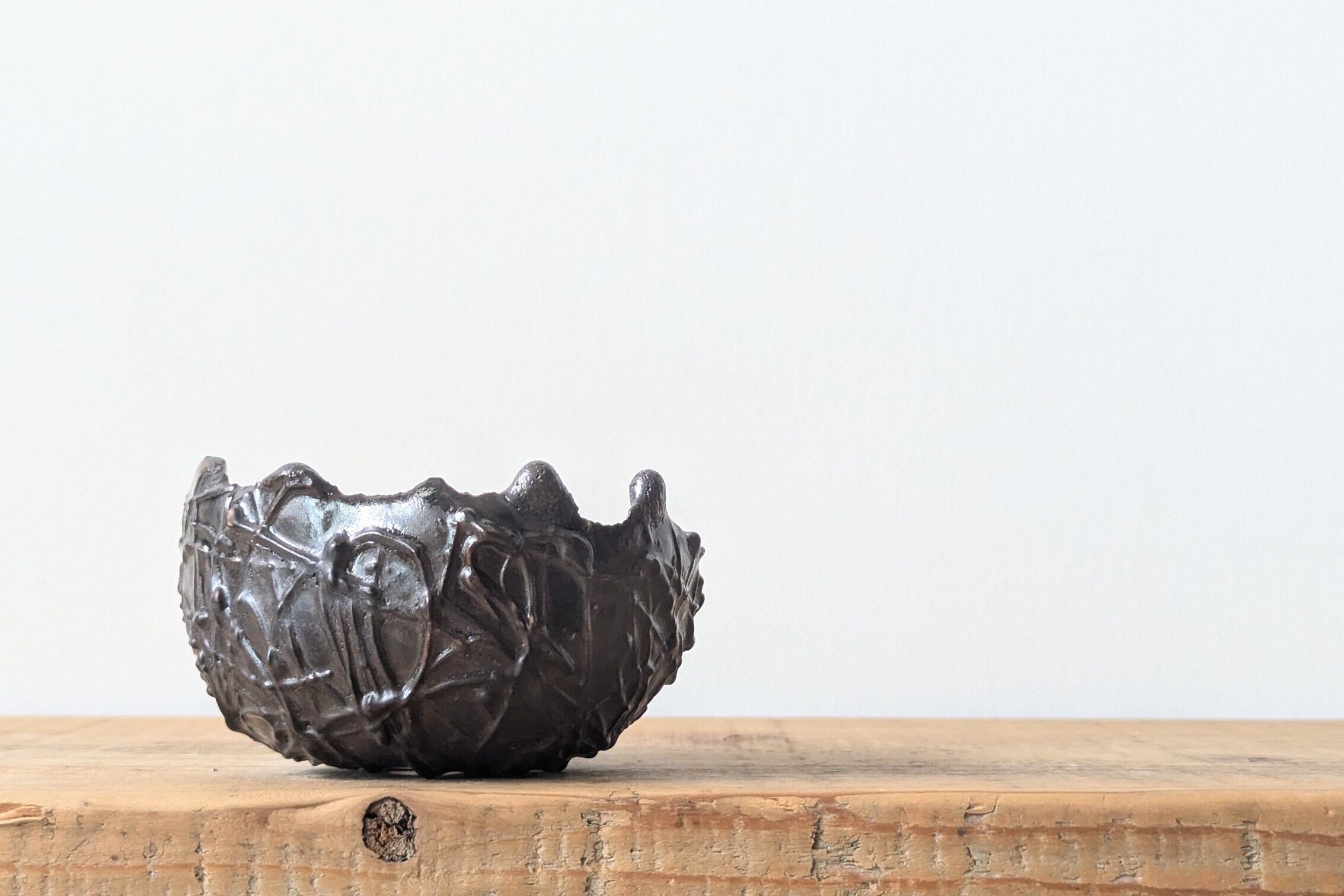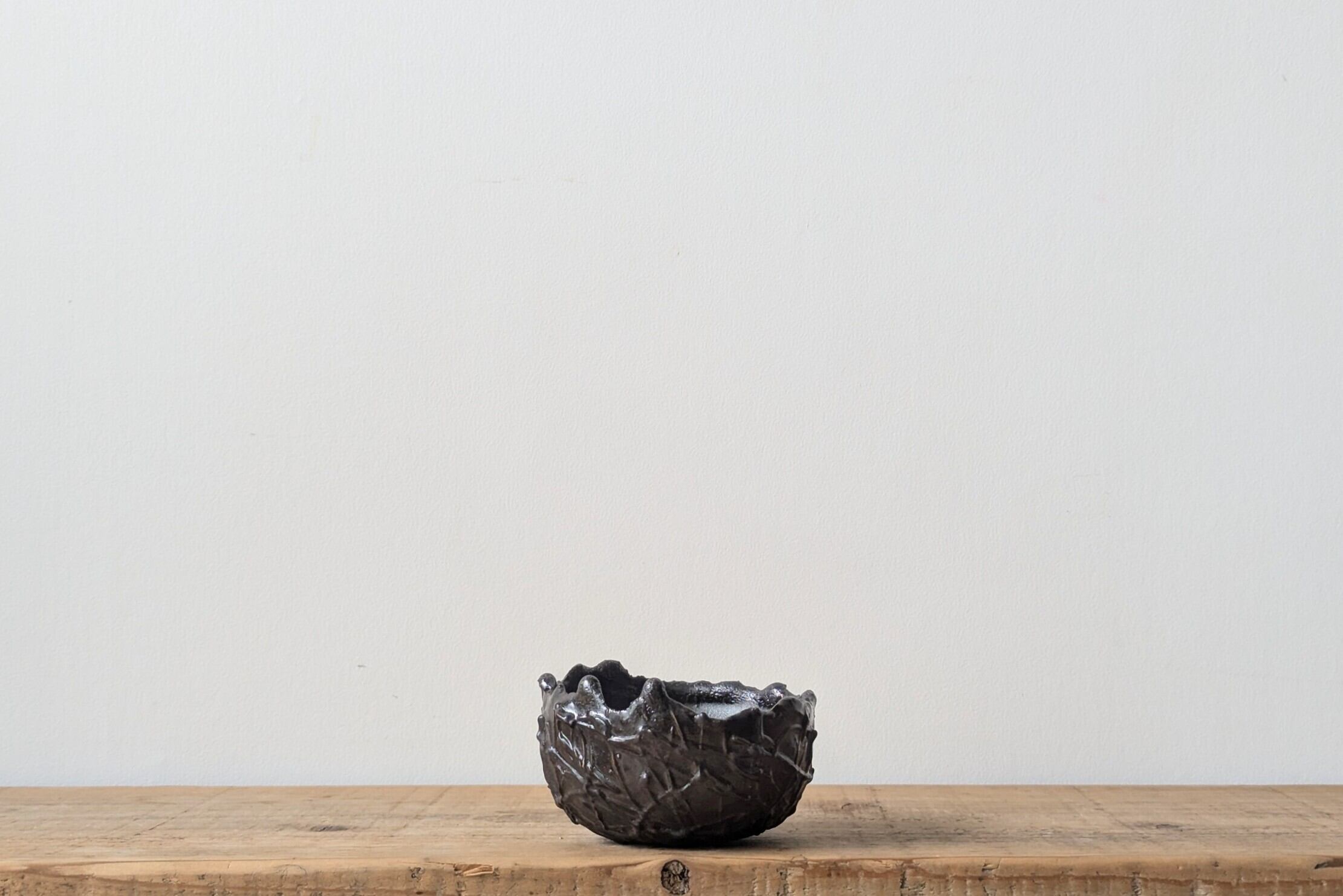 御椀型に成型した陶土に細かい細工を施し、複雑な線が張り巡らせたアートな雰囲気に仕上げました。