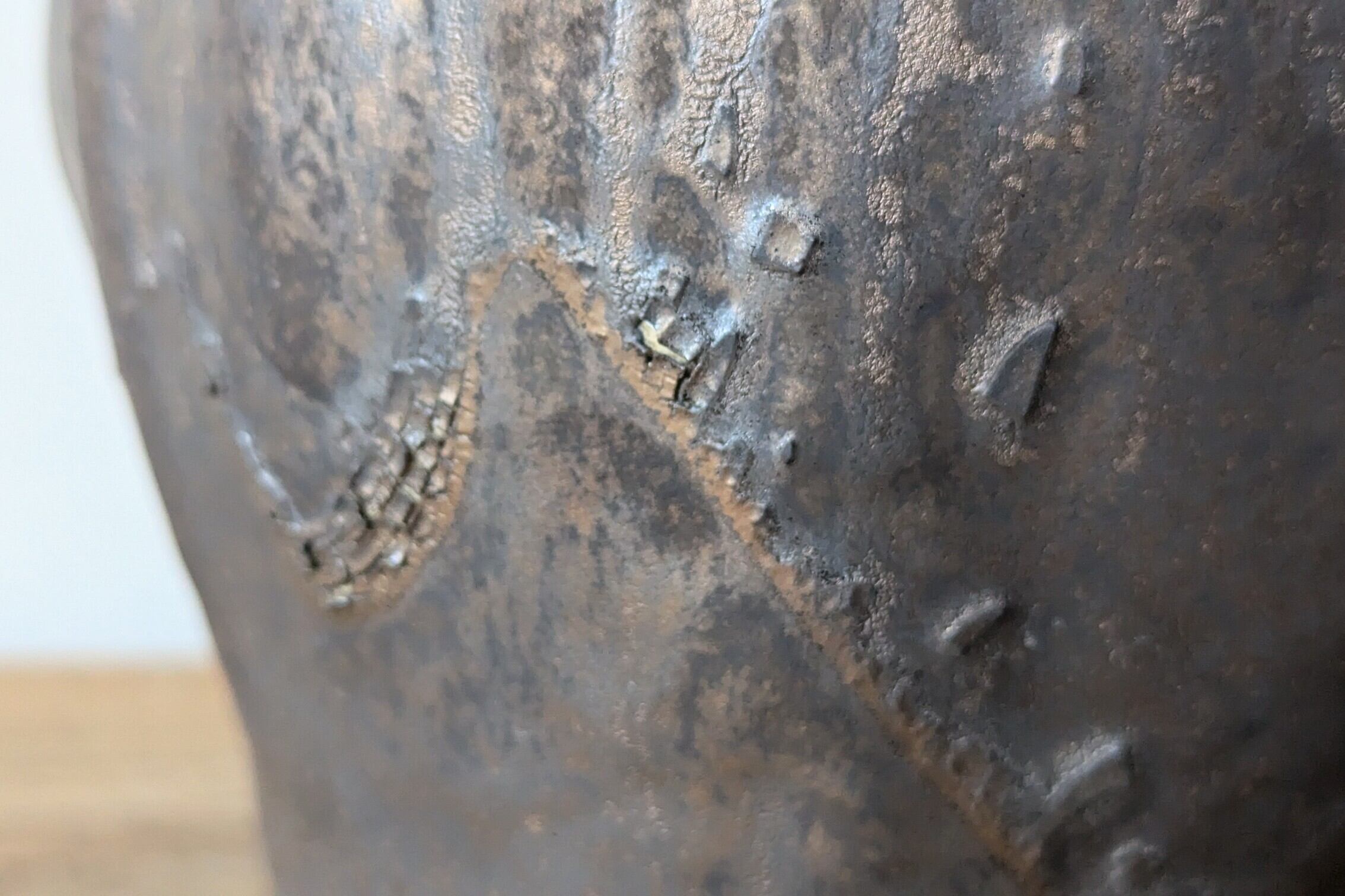 大きな花瓶型に成形した器に小さなヒビ割れを施し釉薬で仕上げました。ハンドメイド感のあるこのサイズは中々他には無いと思います。歪な形と角度で違った表情をお楽しみ下さい。
