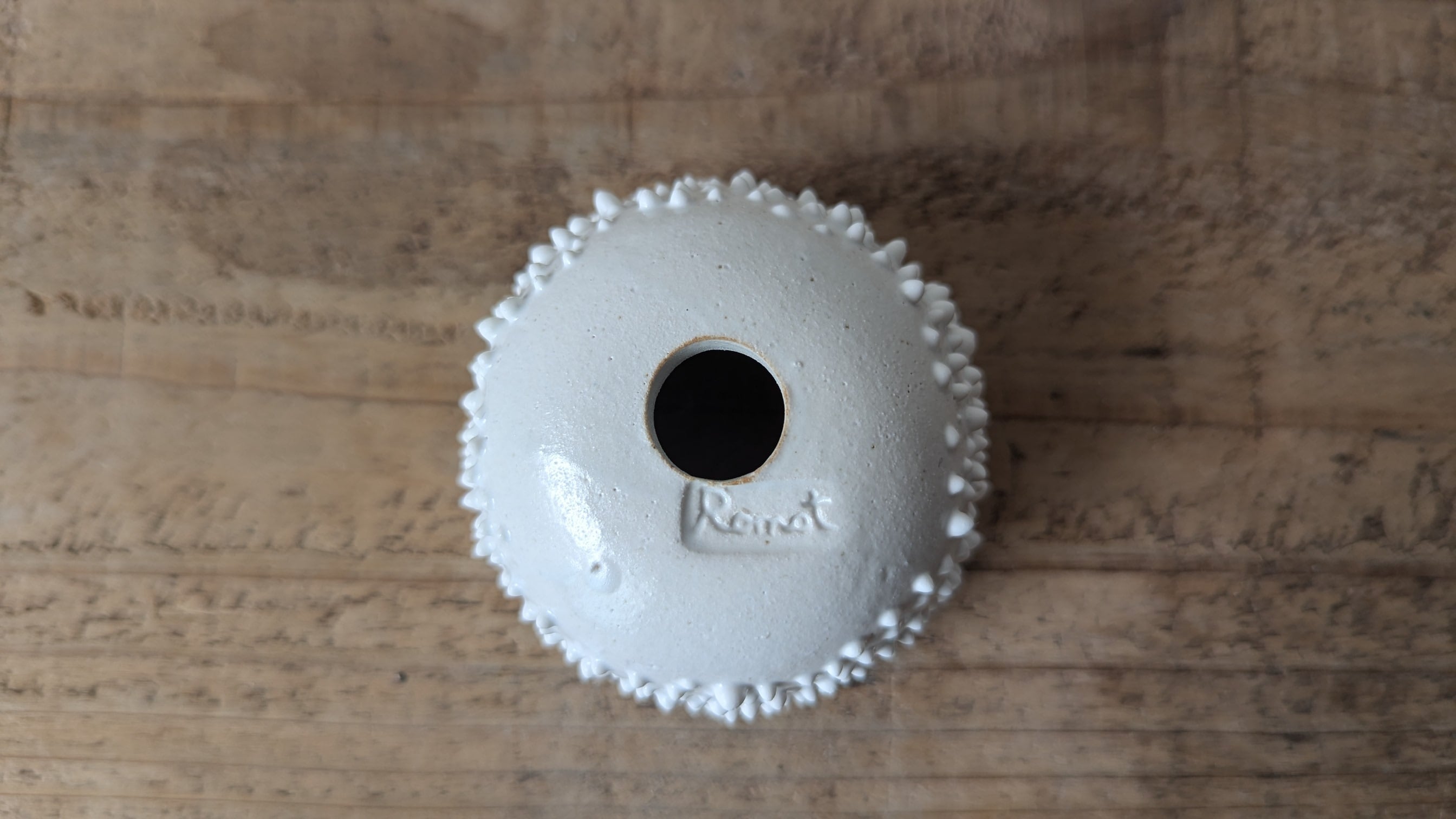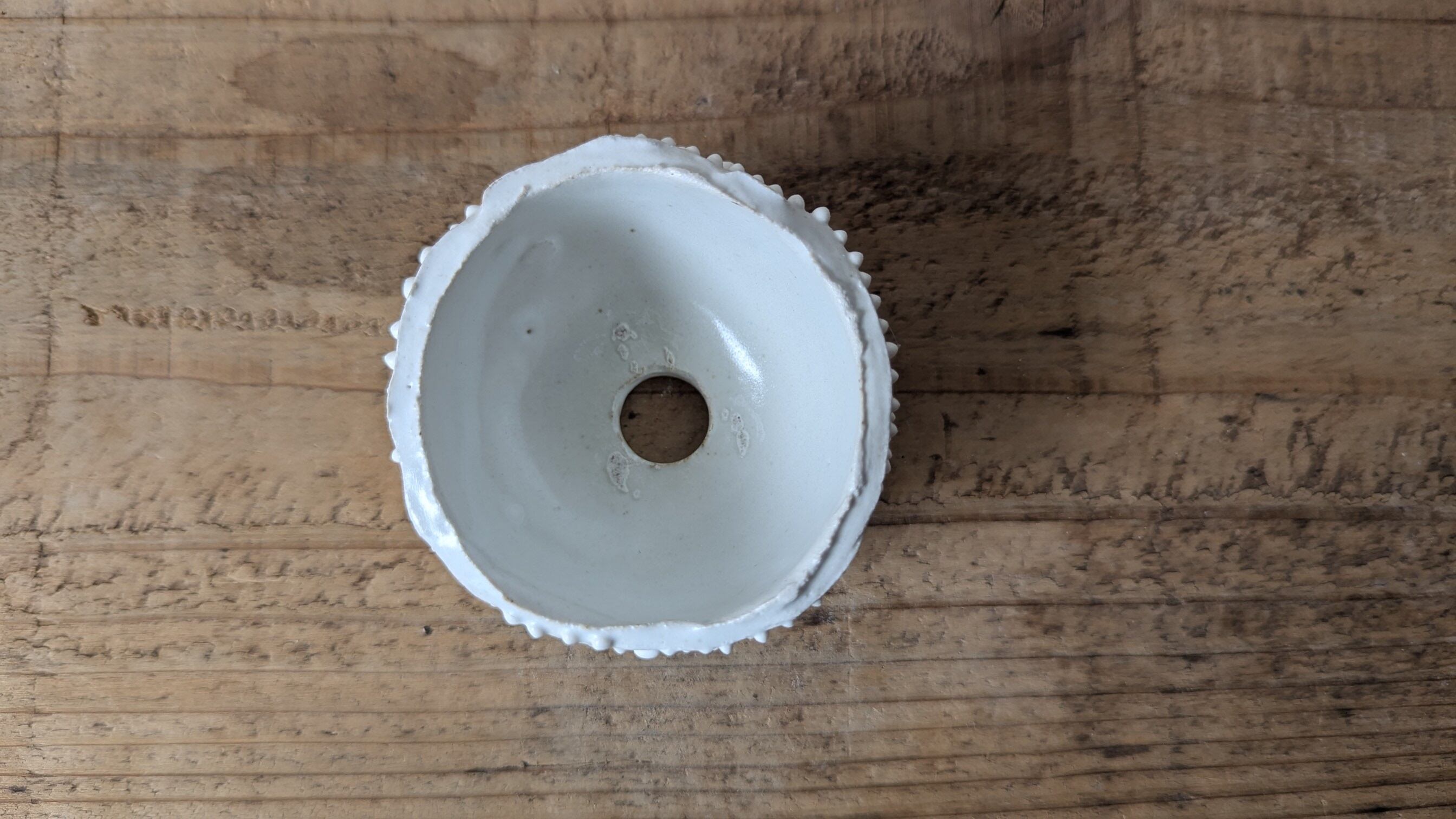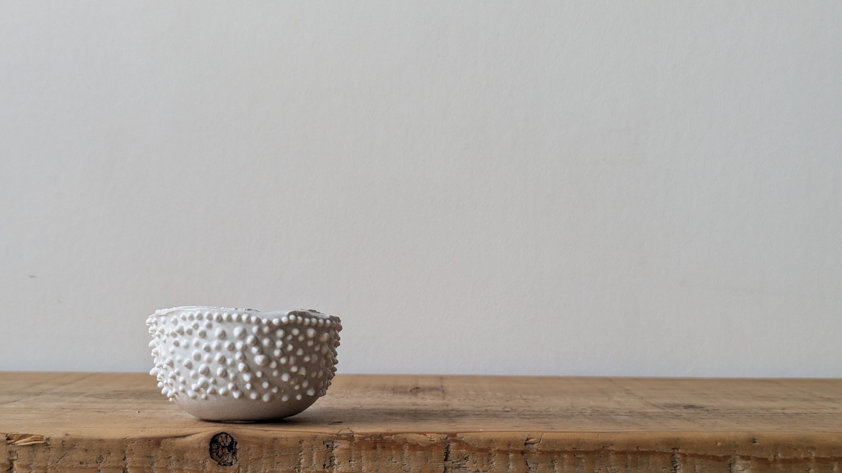 小さなお椀型に成型した成型した陶土に細かい細工を施し、まるで木の表皮の様な雰囲気に仕上げました。実生や小さな植物を入れると存在感のある仕立てになります。