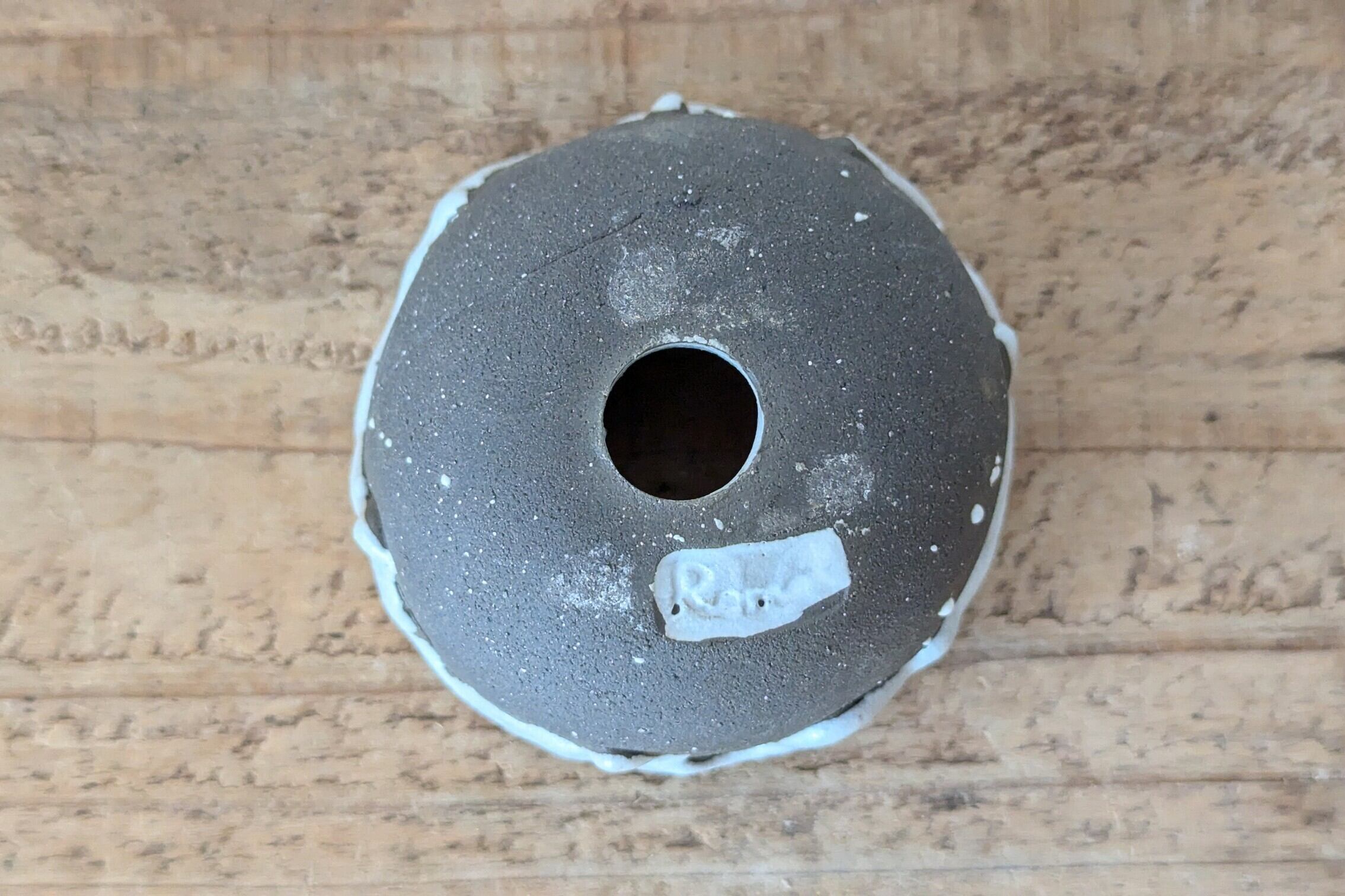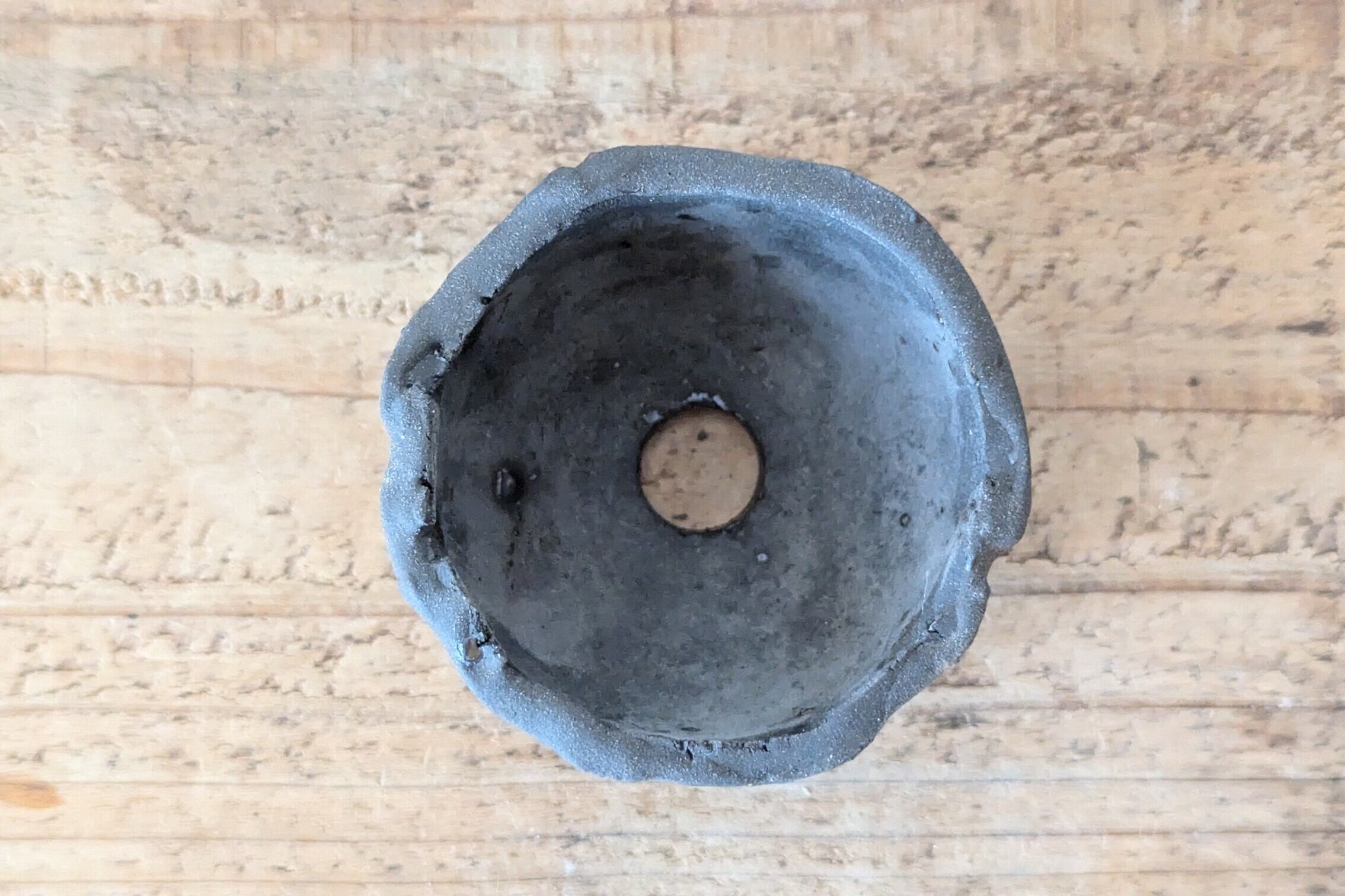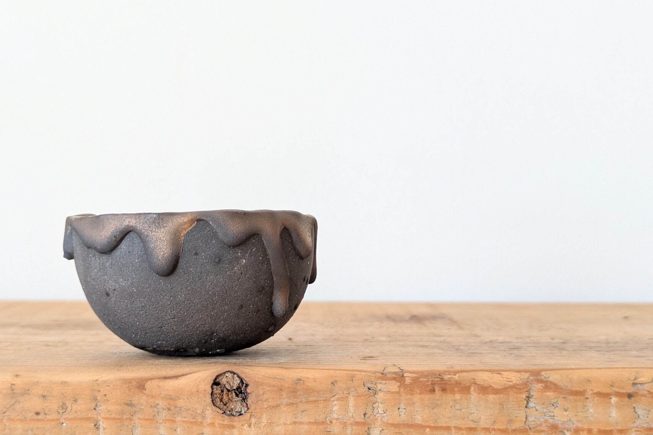 小さなお椀型に成型した成型した陶土に陶土を垂らし釉薬で仕上げました。実生や小さな植物を入れると存在感のある仕立てになります。