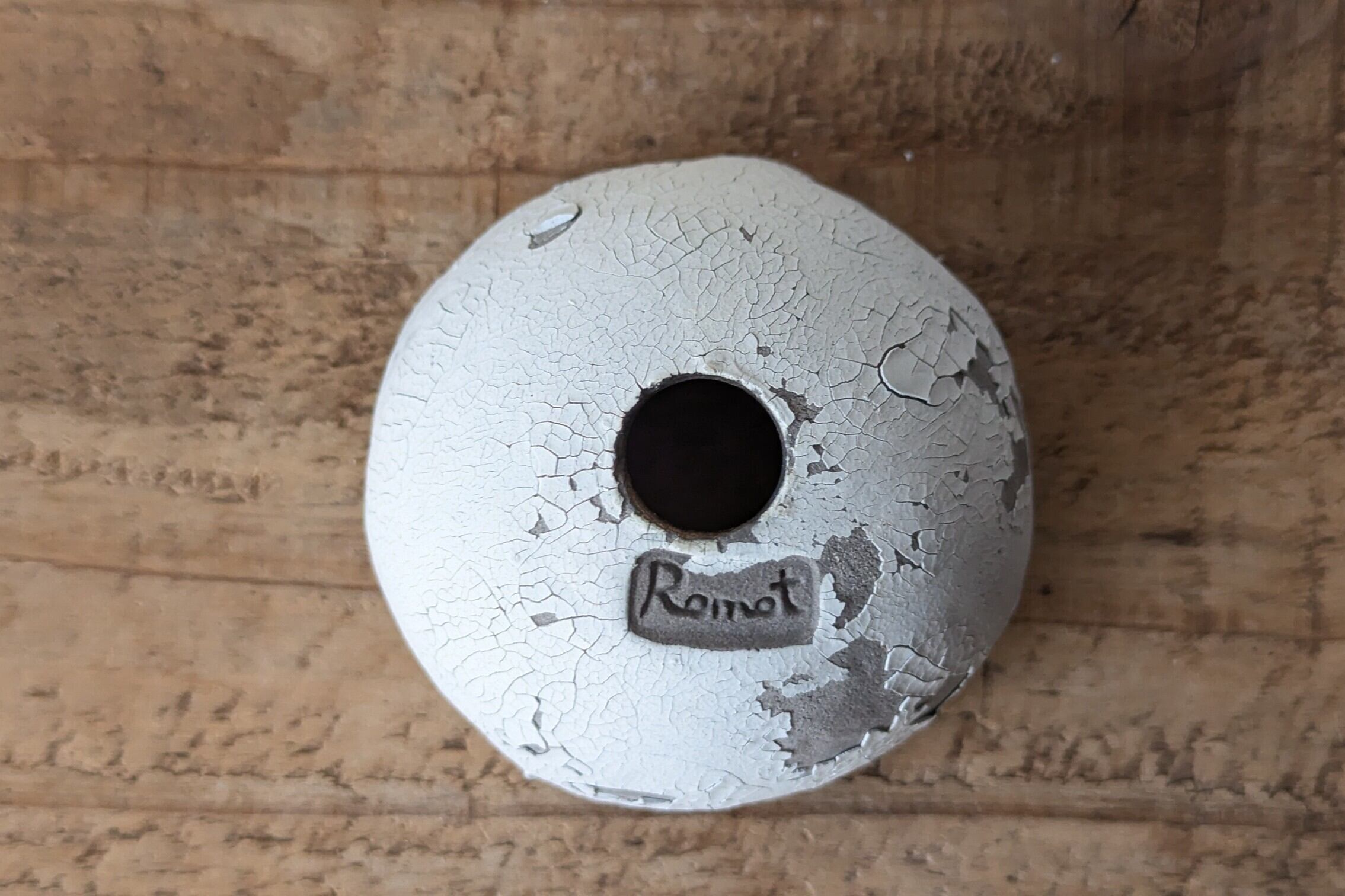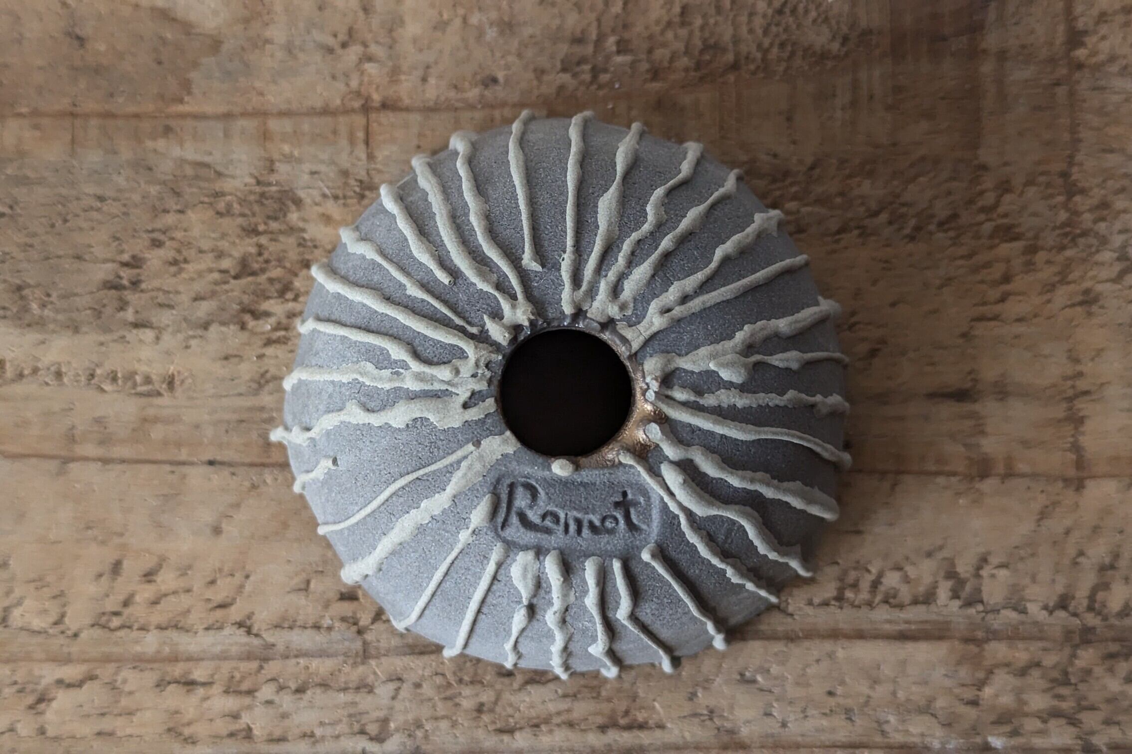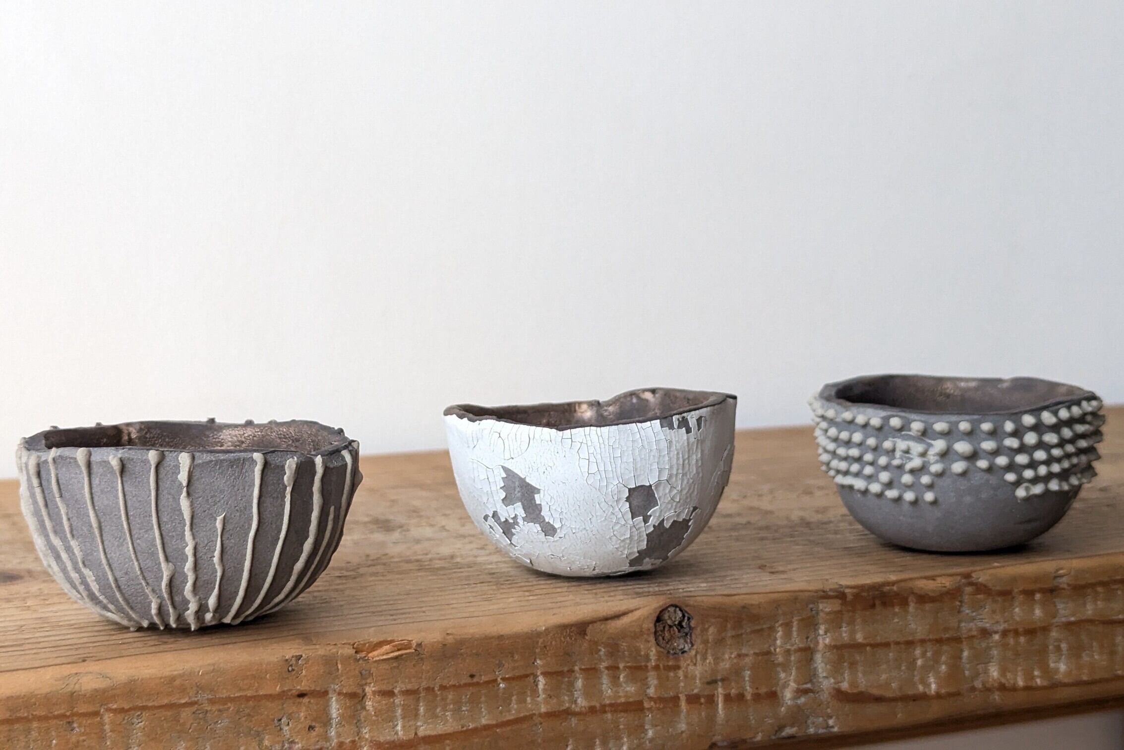 小さなお椀型に成型した成型した陶土に陶土を垂らし釉薬で仕上げました。実生や小さな植物を入れると存在感のある仕立てになります。